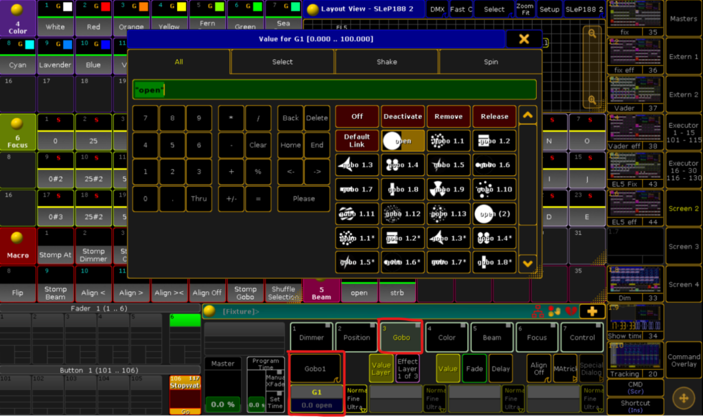 Gobo1のエンコーダーを押すと、中身のゴボネタの詳細が見れます↓