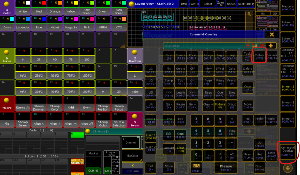 灯体を選んでDimmerを100%、色をブルーにしておく➡Highltを押す➡Nextを押すと1台ずつ灯体が選ばれる